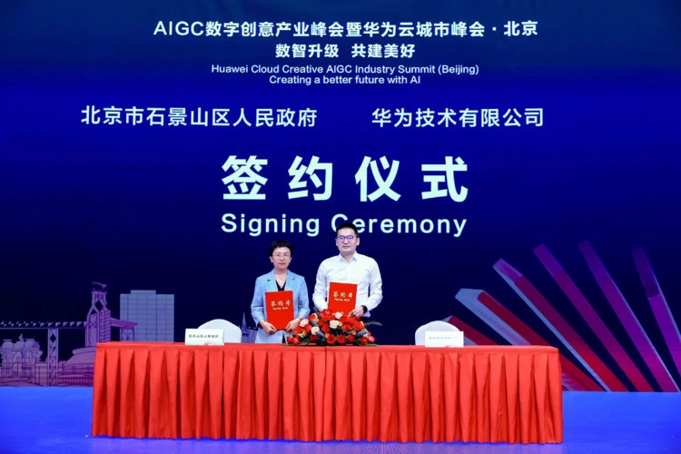 会上,华为云与北京市石景山区政府签署合作协议,旨在通过AIGC技术推动数字经济和产业发展新动能。