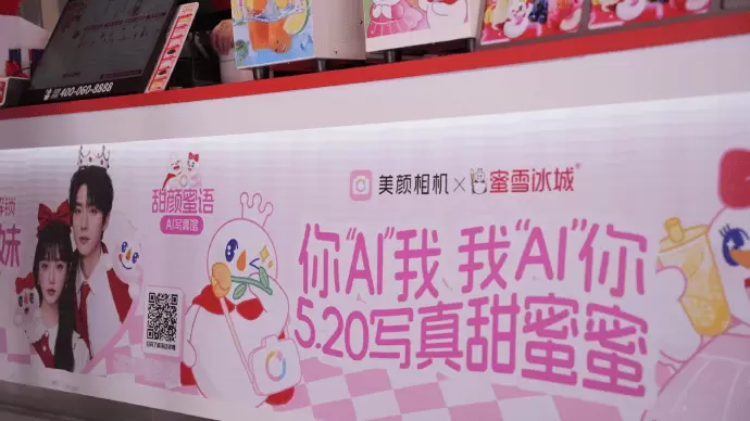 美颜相机联手蜜雪冰城开了家快闪店!甜颜蜜语AI写真馆!