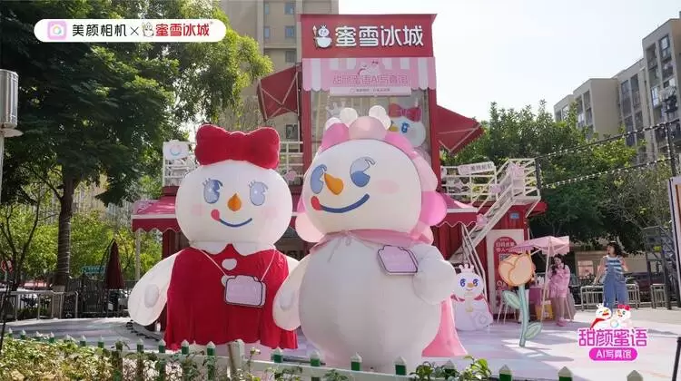 这一次,“颜王”美颜相机与蜜雪冰城跨界合作,在美颜相机App联名推出“甜颜蜜语写真”,并在厦门打造了【甜颜蜜语AI写真馆】520快闪店,更是请来了雪王雪妹担任此次活动的“代言人”。