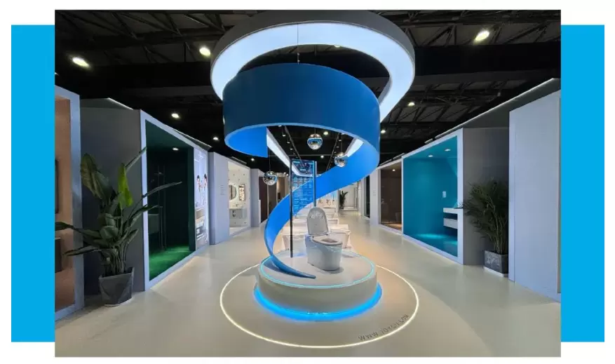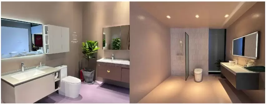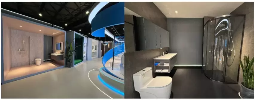 中宇厨卫展馆以舒适轻松为主调,精心划分了多个特色展区。暗装套间、样板套间、新品展示区、定制套间各具特色,每个展区都基于实际生活中浴室场景进行精心的设计,既体现了科学规划,又彰显了空间利用的极致艺术。