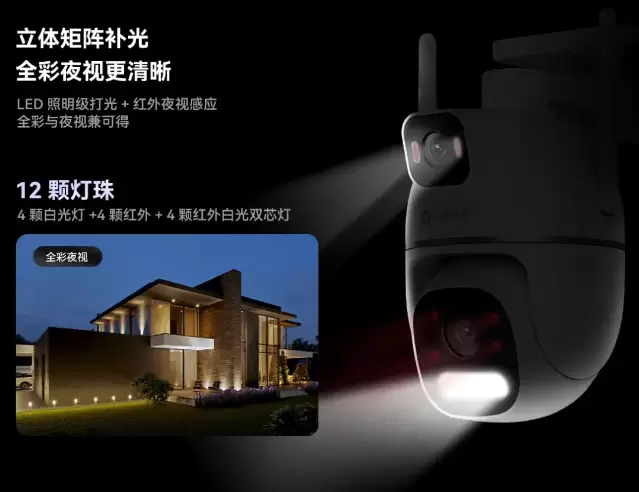 【12颗补光灯珠,全彩夜视,安心入眠】