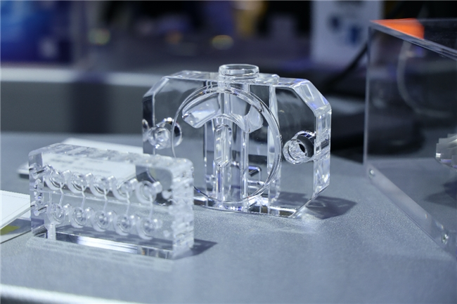 机加工产品:水路板(前)、装饰连接块(后)