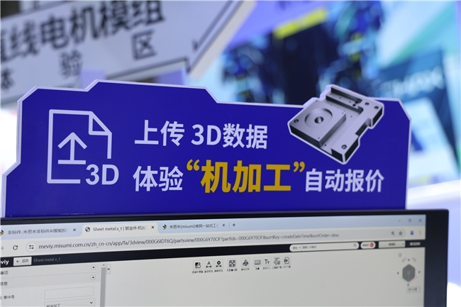 同时,在此次展会上,米思米还展示了meviy AI智能报价平台在钣金加工当中的实操案例:用户上传钣金零件的3D数据后,AI人工智能便可根据算法,自动解析该模型的形状及特征,并通过自动化计算加工程序,当场判定是否能够进行加工处理,如果有问题便会马上提示用户进行调整,从而避免因设计错误导致的生产延误和成本浪费。米思米meviy AI智能报价平台的智能化创新,大幅缩短了非标零件的制造周期,从设计到生产,最快1天出货,为企业的生产制造提速助力。