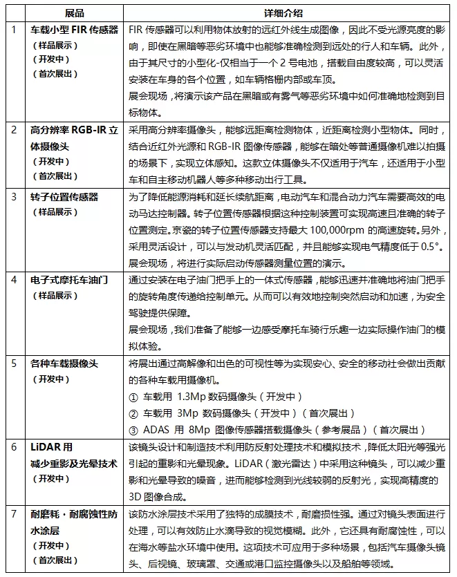 本次展会,京瓷将展出“车载小型FIR传感器”样品,该传感器能够在黑暗或暴风雨等恶劣环境中检测到远处的行人和车辆。同时,京瓷还将带来“摩托车电子油门”的样品体验,该产品通过高精度传感器控制,为安全驾驶做出贡献。此外,京瓷还将展示其他车载相关零部件、产品和技术。