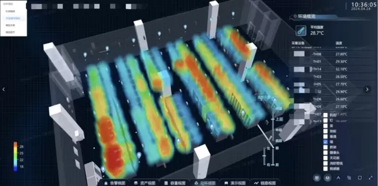 将真实机房的物理环境转化为生动的3D全景可视化界面,并辅以2D机柜的可视化呈现,最终实现全资源的智能可视化展示,实现对数据中心内全部资源及子系统的集中统一管理、智能告警处置、多维信息融合、问题快速溯源、故障影响判断。