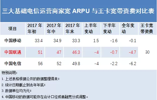 中国联通官方渠道公告,王卡宽带融合产品先在深圳试点办理运营。本次试点预邀请名单制王卡用户开通王卡宽带,仅受邀请的用户可以办理,后续再全国推广。从去年的12月1日到现在,时间已过去了四个半月。除了少数的几个省份中的部分城市可以申请外,绝大多数地区还不能办理。王卡宽带这样“犹抱琵琶半遮面”,遮遮掩掩的欲罢还休,除了引起网民热议,争抢用户眼球,扰乱家宽市场外,主要就是震慑的打点营销储备作用。从下表中可以明显看出王卡宽带的价格优势,甚至低于中国移动家宽用户ARPU。