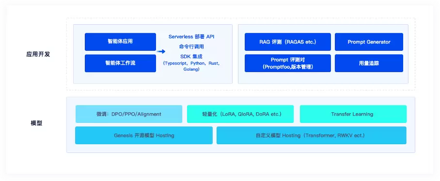 MatrixGenesis,作为 MatrixOS 的核心应用开发层,引领企业级 AI 应用进入一个全新的时代。这一创新平台不仅全链路覆盖了大模型的开发环节,还提供了从模型选择、部署、推理服务、精调,到与结构化系统数据实时打通的全生命周期开发支持。MatrixGenesis 致力于为企业提供端到端的开发流程体验,确保每一个环节都能无缝对接,从而加速 AI 应用的开发与部署。