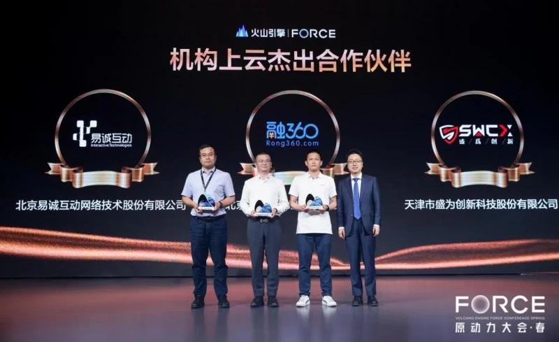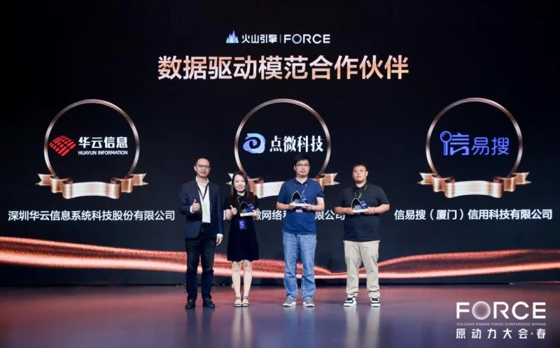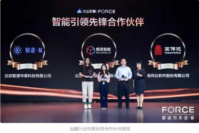 会议最后,火山引擎为金融行业年度优秀合作伙伴颁发奖项,分别表彰他们在机构上云、数据驱动和智能应用等领域的杰出贡献。