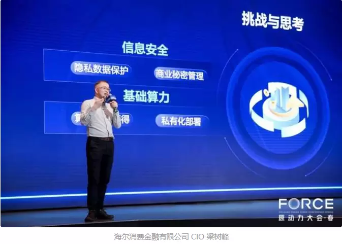海尔消费金融有限公司 CIO 梁树峰认为,大模型技术将对消费信贷的业务流程、客户服务、数字化运营和研发体系产生不同程度的影响,并计划将大模型率先应用于坐席助手、分析助手、研发助手等场景,辅助工作人员更智慧地完成工作。他以坐席助手场景为例,介绍了在5分钟通话时长下,大模型已可较准确地完成通话记录的归纳摘要,显著提升了坐席人员的产能。同时,他也指出了大模型在信息安全、技术代差、算力等方面的挑战,并强调了与火山引擎合作的重要性。