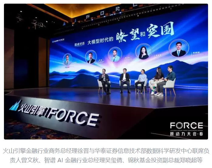 5月15日,2024春季火山引擎 FORCE 原动力大会金融专场论坛在北京举办。会议聚焦大模型在金融行业的规模化应用,升级发布了火山引擎金融大模型解决方案服务体系,并分享了多个已落地的金融大模型应用场景。