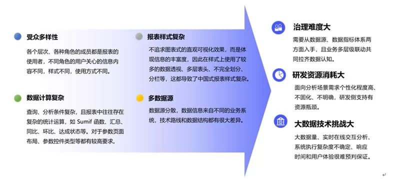 除此之外,通过对业务的观察可以看出,用Excel做数仍然是数据使用人员目前非常主流的处理方式,中国式报表也是业务应用中常见的报表形式。中国式报具有其独特的特点: