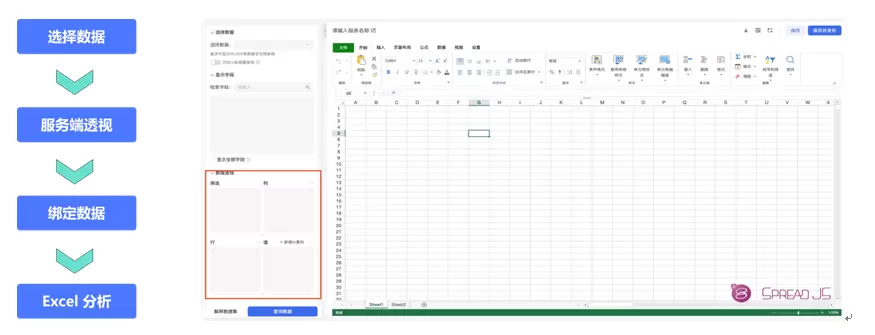 在每年的618或双11大促中,往往会涉及大量的数据分析与展示需求。如果将几千万的数据全部放到Excel中直接进行分析显然是行不通的。这一点不管是使用任何的表格控件都是无法完成的。为了能够有效应对该场景下的需求,就需要将“大数据”与“表格”在技术层面上进行有效融合。借助“服务端透视”功能将数据的分析及处理转移到后端,并将经过筛选之后的数据与表格控件进行绑定,从而解决“大数据”与“表格”的融合问题。