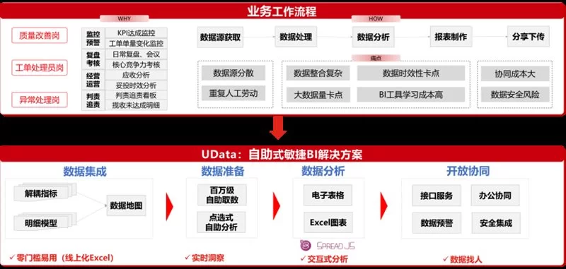 “物流大促期间,在出库单量积压的场景下,不同仓的生产操作人员需要在统一数据源的基础上进行基于自身仓情况的个性化查询分析,从而能够实时监控客单情况,防止积压。要想实现这样的功能,对数据分析平台的要求就非常高。在引入SpreadJS之后,Udata平台可以为客户提供更高效的数据服务方案。”