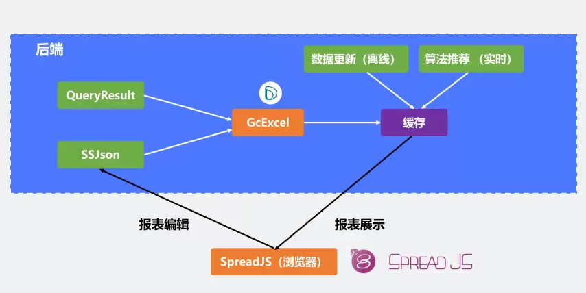 基于以上三点,经过长时间的选型,最终选择了葡萄城的纯前端表格控件SpreadJS,并对解决方案架构进行了优化。