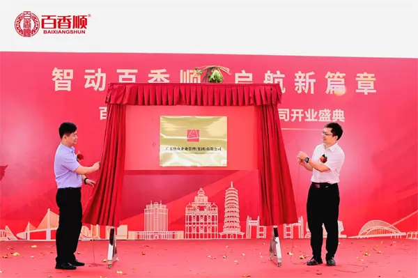 吉星高照,双喜临门,在这个高光日子里,百香顺不仅迎来了江门新工厂的正式开业,还与大家共同见证了企业集团——广东快鱼企业管理(集团)有限公司的成立,陈春旭董事长与江门市江海区江南街道党工委书记陈迁共同为集团揭牌。