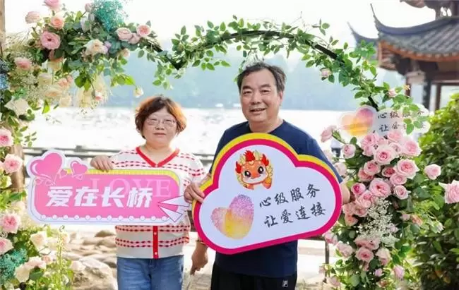 活动现场,长桥公园被装点得浪漫而温馨。入口有专人引导,公园靠近夕影亭附近设置了专门的打卡专区,心级服务LOGO与爱心形状摆件相映成趣,成为了市民和游客们争相合影的热门景点。