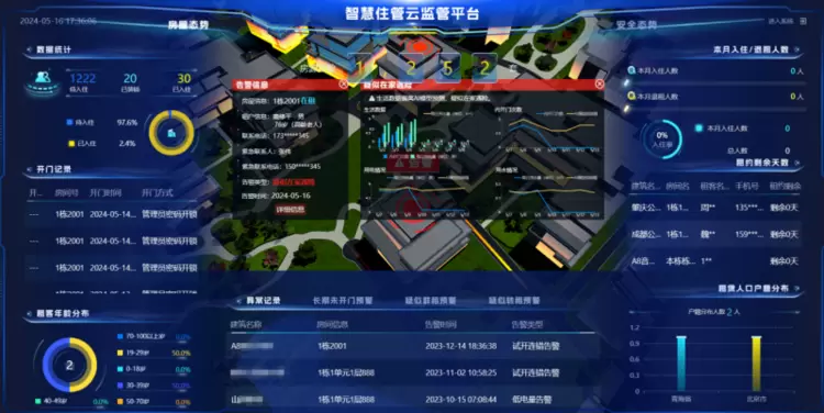 在泛住宿场景中,讲解员展示了其AI关怀预警能力,演示训练居民AI生活模型,通过租住行为数据,实现了对疑似转租、群租、老人遇险等异常情况的自动分析及预警。这一创新应用不仅扩展了传统管控手段的应用边界,还极大地提升了服务治理效率。
