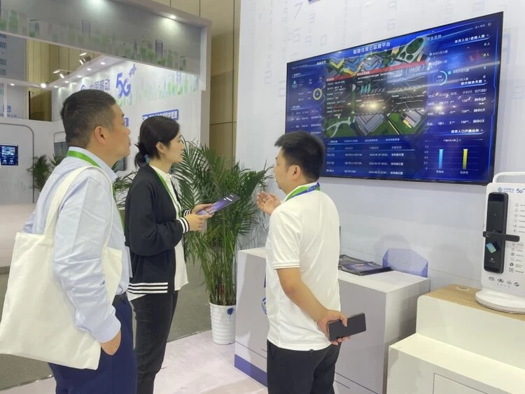 中移物联讲解员为参展嘉宾讲解AI关怀预警能力