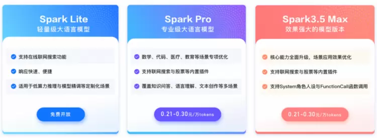 与此同时,科大讯飞还推出了讯飞星火Pro版和Max版API,满足更高阶需求。其中,讯飞星火 Spark Pro API为专业大语言模型,覆盖知识问答、语言理解、文本创作等多种使用场景,并在数学、代码、医疗、教育等方面进行了专项优化。