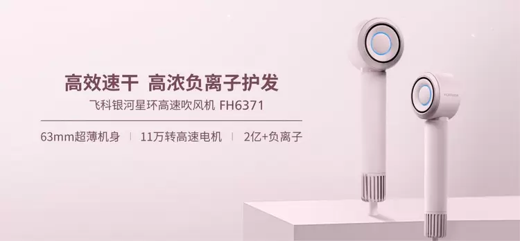 传统吹风机通常采用直流电机,转速在1000-2000/分钟之间,高温“烘烤”造成头发干枯、分叉。飞科银河星环系列高速吹风机则采用自研高速无刷电机,转速高达11万转/分钟,风力强劲高效速干,让打工人轻松实现“早晚洗护自由”。同时,飞科银河星环系列高速吹风机搭载冷热风循环模式和智能恒温技术,精确调温控温,避免高温“重伤”秀发,释放2亿+高浓度负离子滋养抚平毛躁,再现秀发光泽生机。