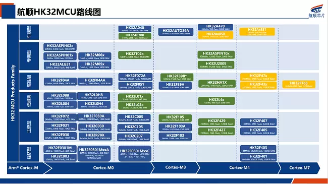航顺芯片自2013年成立以来,一直坚持32位高端MCU+车规SoC双战略,持续高技术研发投入,屡克技术难关,已量产百余款工业/商业/车规级、通用/专用/定制化32位MCU,申请自主知识产权专利200件+并在持续增长中,成功建立了完善的航顺HK32MCU产品阵列和生态体系。