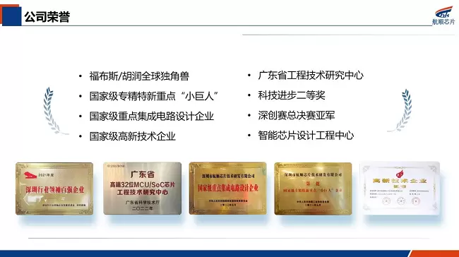 同时,航顺芯片在业界也广受认可,先后获得福布斯/胡润全球独角兽、中国IC独角兽、国家级专精特新重点“小巨人”企业、国家级重点集成电路设计企业、国家级高新技术企业、广东省高端32位MCU/SoC芯片工程技术研究中心、深圳行业领袖企业100强、深创赛总决赛亚军、科技进步二等奖等。