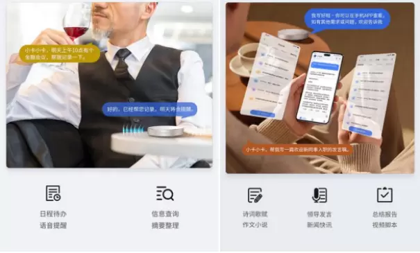 依托 AI 大模型智能助理功能,小卡AI.Bot能一句话创作各类长短篇文案,一句话搞定生成信息摘要,一句话记录日程、生成待办……提供定时语音提醒功能。