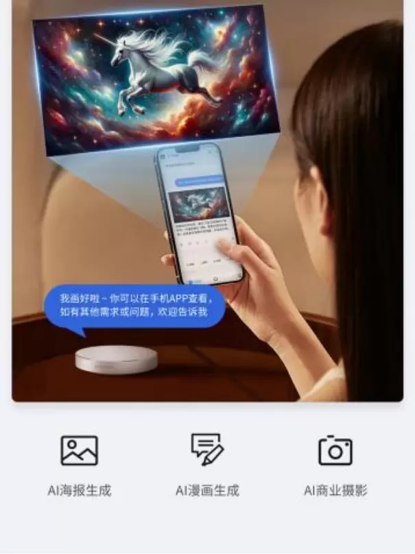 同时,它也是孩子的AI绘画大师,依托AI大模型文生图能力,能通过自然语言描绘出孩子心中所想,打开孩子想象力。