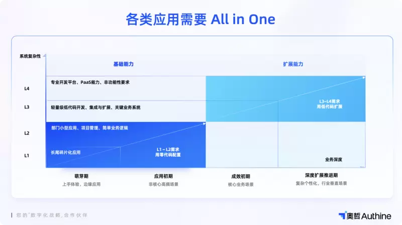 奥哲·云枢All in One低代码平台,主要体现在以下四大方面的“All in One”: