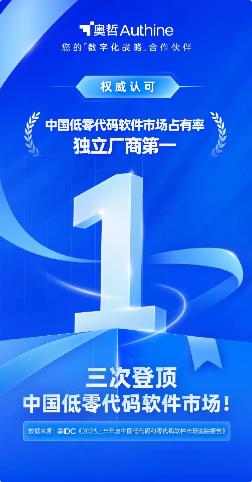 这也是自2020年以来,奥哲第三次获得低代码总体市场第一,充分彰显了奥哲在低代码领域的产品实力及领导地位。
