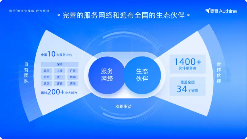 在服务保障上,奥哲已拥有完善的服务网络和遍布全国的生态伙伴,建立了北京、上海、广州、深圳、成都、武汉、杭州、青岛、西安、厦门十大服务中心,以此为中心节点可辐射全国200多个大中型城市。