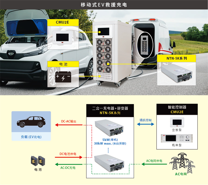 ·采5KW单机模块化设计,AC输出可弹性并联至30KW (1+5台),扩充瓦数非常弹性