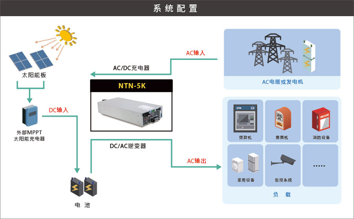 明纬继推出NTS/NTU系列250~3200W 离网型DC-AC逆变器后,现往上扩充了用途更广的单机5KW正弦波逆变器- NTN-5K系列。