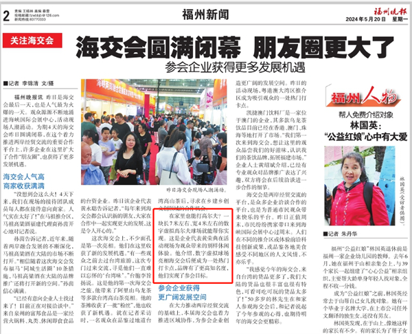 本届海交会由国务院台湾事务办公室、福建省人民政府主办,福州市人民政府、福建省人民政府台湾事务办公室、福建省商务厅承办。一年一度大型综合性对外经贸活动,是两岸经贸交流的盛会。展会期间举办各类经贸交流和产业对接活动82场,3800多名两岸嘉宾参与,参与台湾地区工商团体、台胞台企数量创历史新高。