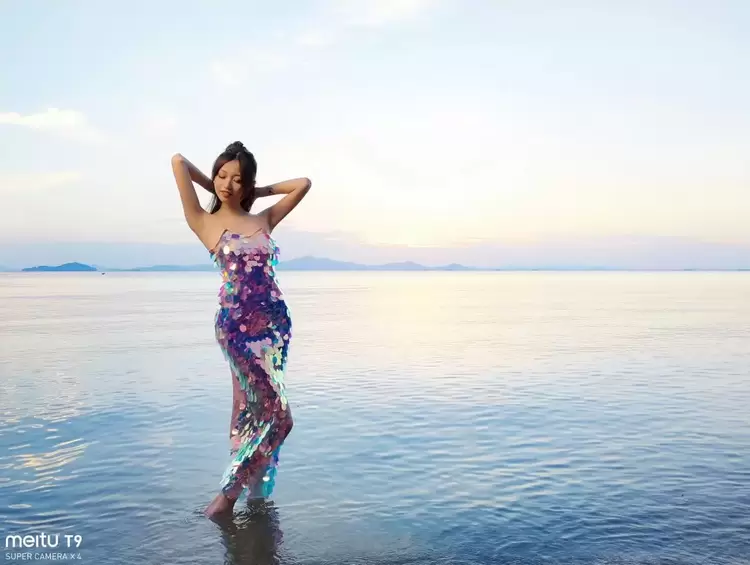 而歪猫用美图T9在太湖边进行人像拍摄的效果相较之下可谓十分惊艳,不仅完美记录了太湖边夕阳下极为唯美的风光之色,也同时在逆光的下完美记录了模特的神态、服饰特点,尽管是逆光情况,发丝、眉毛以及服饰的鳞片质感都刻画得十分清晰。