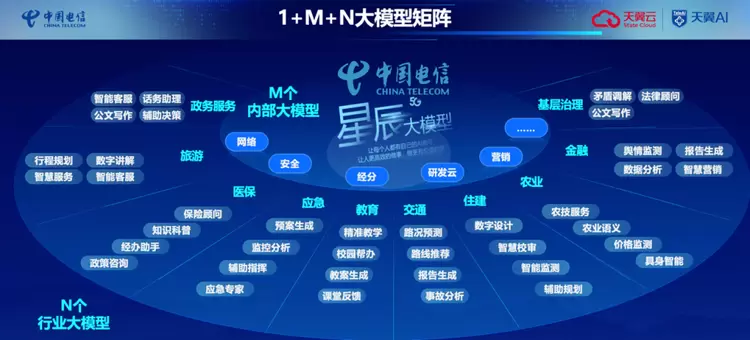 在星辰大模型矩阵中还包括有星辰视觉大模型、星辰语音大模型以及星辰多模态大模型。基于该矩阵,中国电信正积极为千行百业赋能,推动行业智能化升级。