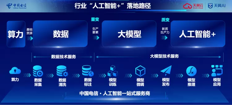 近年来,作为“人工智能+”行动的重要参与者,中国电信依托云、网、算力优势,基于安全、量子、人工智能等前沿技术,释放数据要素倍增潜力,通过聚数生智实现行业“AI+”的应用创新,将大模型应用到各个行业领域中,进一步打通“科技—产品—产业”大循环,并取得了系列显著成果,进一步加强“人工智能+”赋能数字中国建设。