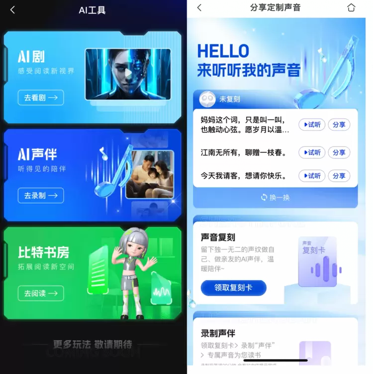近年来,咪咕公司围绕内容生产、聚合、传播重点领域,推动智创彩铃、智慧观赛、沉浸阅读三大特色应用产品从“+AI”向“AI+”升级,为用户提供全场景个性化体验。
