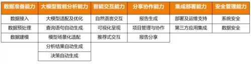 中国信通院云计算与大数据研究所依托中国通信标准化协会大数据技术标准推进委员会(CCSA TC601),联合50余家企业的100余位专家共同编制完成了《大模型驱动的智能数据分析工具》标准,瓴羊为核心参编企业之一。标准包含数据准备能力、大模型智能分析能力、智能交互能力、分享协作能力、集成部署能力、安全管理能力等六大能力域,18个能力子域,54个能力项。
