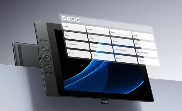 ugee友基UE16绘画屏采用全新自定义悬浮快捷键,8个实体快捷键,保持物理按键手感,满足创作者不同使用偏好与习惯。自定义滚轮设计,可一键切换预设的4种不同功能,轻松操控,提笔即画,摆脱繁琐的键盘鼠标,创作专注且自由,效率瞬间飙升。