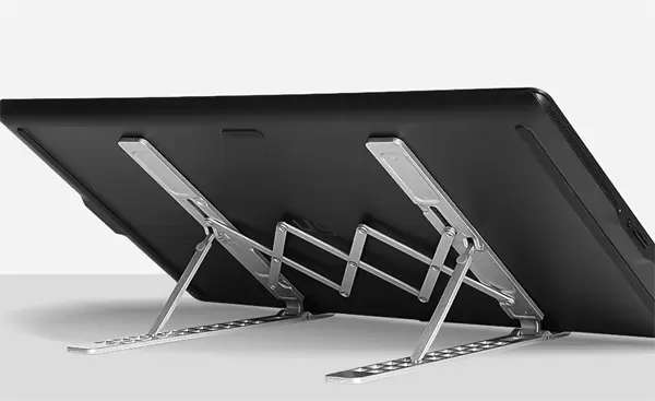 ugee友基UE16绘画屏配置有21°~64°可调节铝合金支架,轻巧可折叠,10档角度选择,无论是站着、坐着、躺着、趴着,随时都能让你保持最舒适自洽的创作姿势,营造沉浸式高效创作体验。此外,ugee友基UE16绘画屏还支持正反盲插Type- C接口,支持 USB-C线一线直连,免去多线缠扰,桌面更加整洁舒适,创作更高效专注。