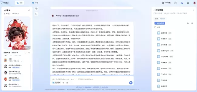 自定义社交分组,建立数字人的同事圈、好友圈、亲友圈,降低沟通协同成本。各行业大咖、专家、企业、工作室等入驻数字人广场,提供专业的问答咨询服务。