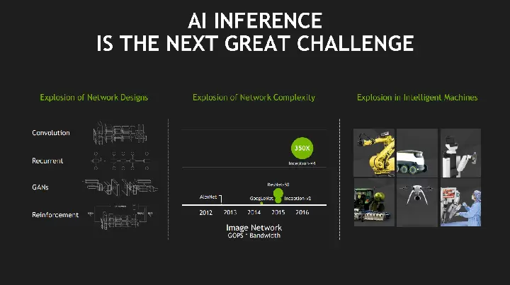 人工智能经过这么长时间的发展,在网络的种类、复杂程度和处理的信息量上都发生了天翻地覆的变化。网络种类上,从早期的 AlexNet 和 GoogleNet 到现在各种各样的 GAN(生成对抗网络)以及各种深度强化学习的网络,它们各自网络结构都有不同,开发者在适应最新的网络上常常会遇到一些麻烦。