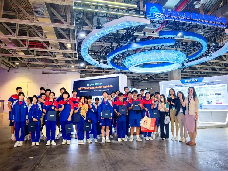 在展会的公众开放日,澳门多所学校的中小学生来到北控水务集团展位参观,学习水污染治理与水生态保护方面的知识,了解北控水务集团在水务与环保领域的全球化布局和引领性贡献。讲解员重点介绍了集团多年产教融合的实践经验,以及实现教育链、产业链、供应链、人才链与价值链有机衔接的重要举措。