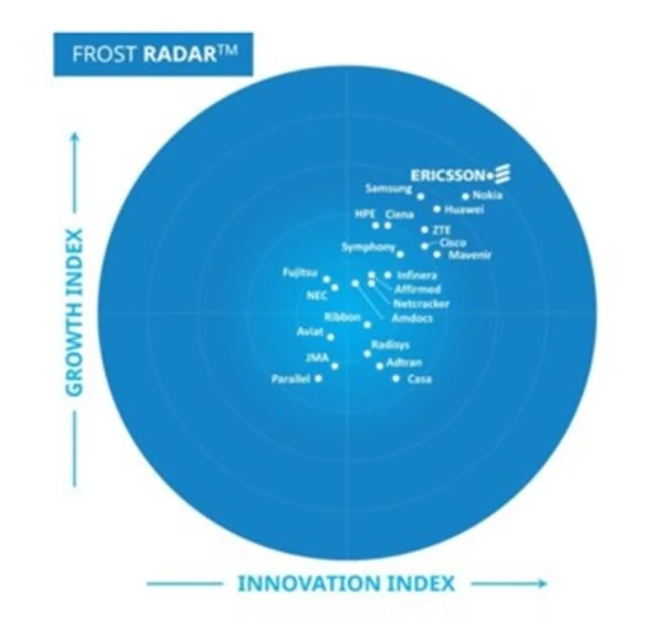 在过去几年中,爱立信一直在Frost Radar™报告中名列前茅。这一结果表明,爱立信对研发及各种产品组合的投入(包括5G网络基础设施的所有领域及前几代网络基础设施)在技术持续演进的市场中得到了认可。