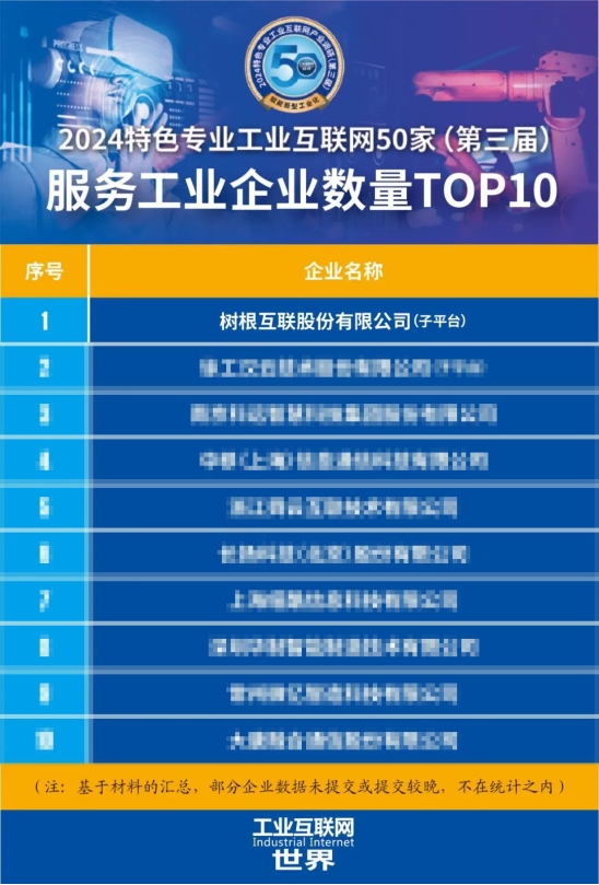 近日,由国家工信部主管媒体《通信产业报》全媒体“工业互联网世界”主办的2024特色专业工业互联网(第三届)产业调研报告,在世界电信和信息社会日之际正式发布。本次调研以“打造新质生产力,赋能新型工业化”为主题,面向工业互联网产业链企业,针对重点行业、重点区域和特定技术领域开展“2024特色专业工业互联网(第三届)产业调研”分析研究。在50家入选平台中,树根互联旗下根云-工业连接平台,凭借领先的技术能力与赋能经验位居整体调研第三、服务工业企业数量第一。
