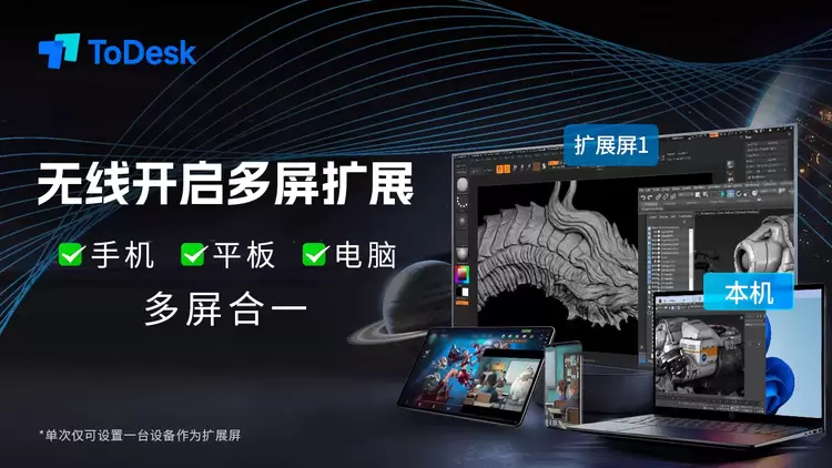 对于设计师、剪辑师等创意工作者来说,多屏操作能提高产能,所以扩展屏是他们的刚需必备品。而ToDesk的扩展屏不仅免费易用,还能将平板手机都作为屏幕,为设计师展示更多的设计元素、参考图像或视频素材,帮助他们更好地完成创作任务。