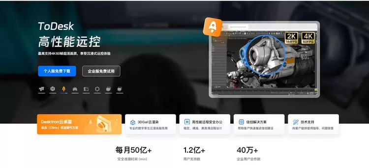 ToDesk是一款功能强大的软件,在远程控制方面,提供了流畅稳定的连接体验,画质高清,传输速度极快。目前ToDesk已拥有近亿万的用户,并与40万+企业建立了深度合作。