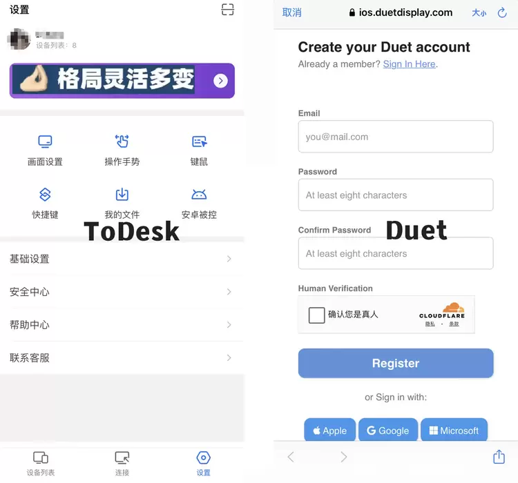 ToDesk为国产软件,操作界面简单明了,手机号码即可注册使用,对国内用户非常友好,无需复杂的设置即可轻松开启扩展屏。而Duet是国外软件,需要通过邮箱注册才可使用,并且需要用户进行更多的设置和调整才能达到最佳效果。对于国内用户而言,ToDesk这一优势让他们在使用过程中更为方便快捷。