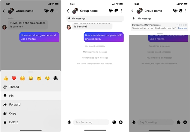 为了帮助用户标记和突出显示重要的消息,从而方便会话中的所有用户更容易找到和访问重要消息内容,4.5.0&4.6.0 版本更新了消息置顶功能。该功能允许用户将会话中的指定消息固定在会话框顶部,且用户可任意置顶所有类型的消息,包括重要通知、待办事项、重要文件等。